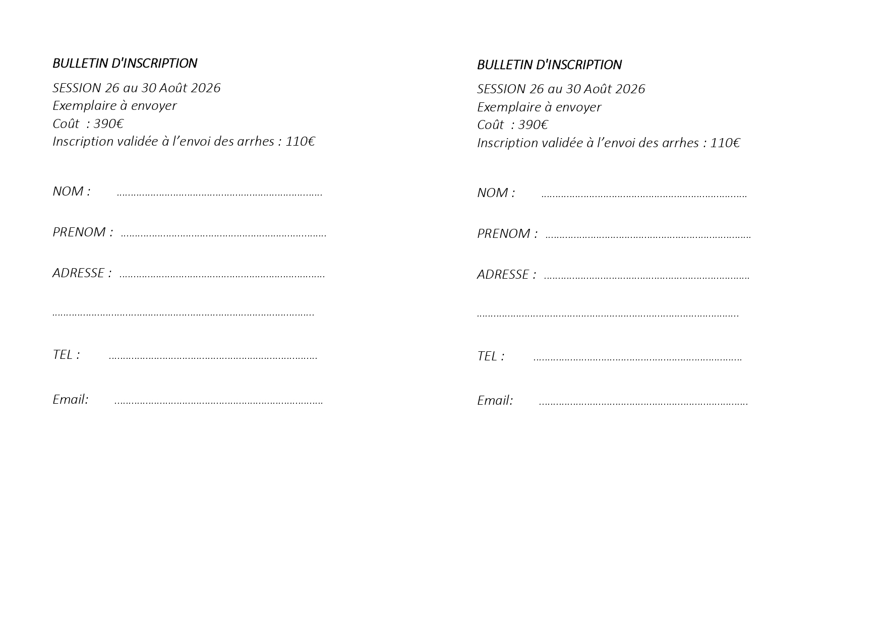 26/08/2026 au 30/08/2026